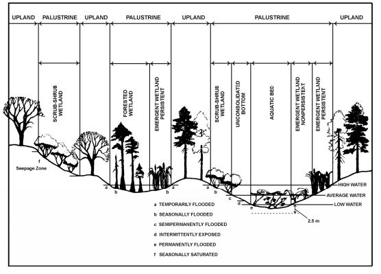 Classes: Rock Bottom, Unconsolidated Bottom, Aquatic Bed, Unconsolidated Shore, Moss-Lichen Wetland, Emergent Wetland, Scrub-Shrub Wetland, and Forested Wetland.