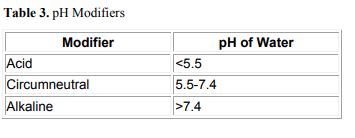 There seems to be little doubt that, where a peat layer isolates plant roots from the underlying mineral substrate, the scarcity of minerals in the root zone strongly influences the types of plants that occupy the site. For this reason, many authors subdivide freshwater, organic wetlands into mineral-rich and mineral-poor categories (Sjörs 1950; Heinselman 1970; Jeglum 1971; Moore and Bellamy 1974). We have instituted pH Modifiers for freshwater wetlands (Table 3) because pH has been widely used to indicate the difference between mineral-rich and mineral-poor sites, and because it is relatively easy to determine. The ranges presented here are similar to those of Jeglum (1971), except that the upper limit of the circumneutral level (Jeglum’s mesotrophic) was raised to bring it into agreement with usage of the term in the U.S. The ranges given apply to the pH of water. They were converted from Jeglum’s moist-peat equivalents by adding 0.5 pH units.